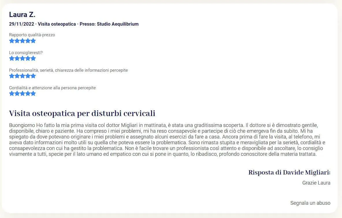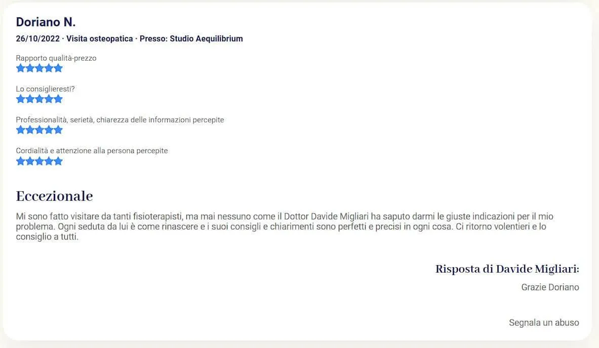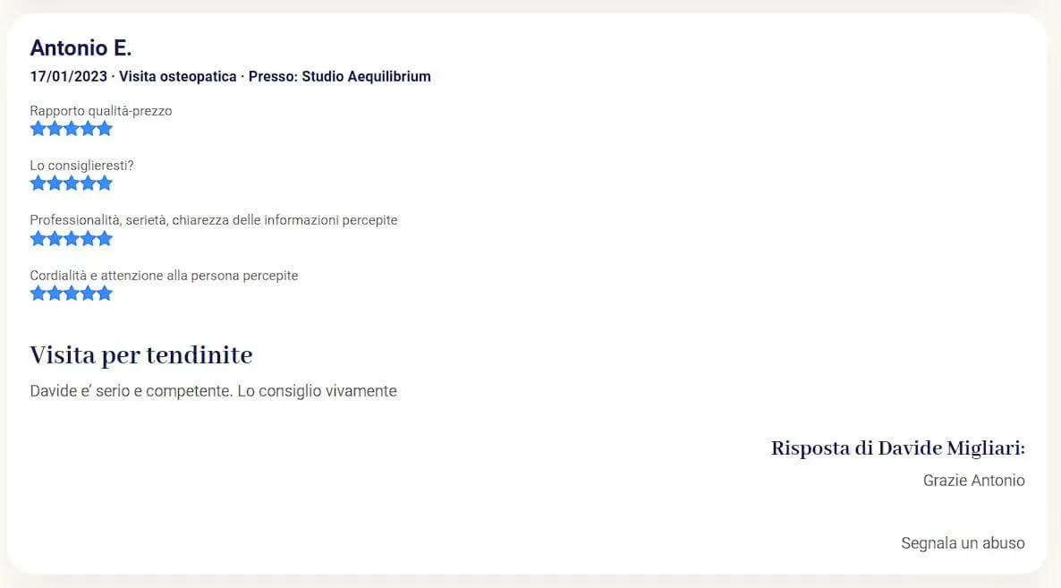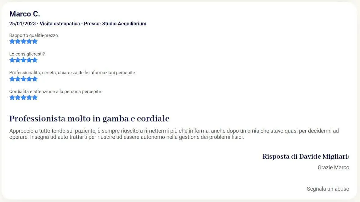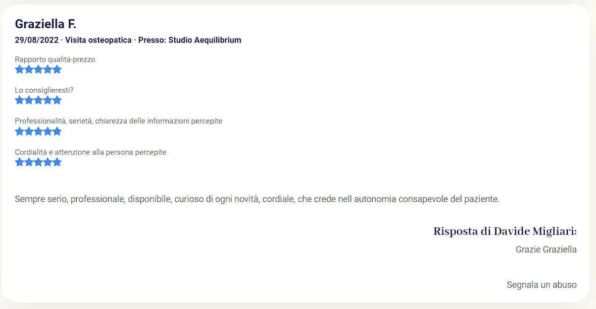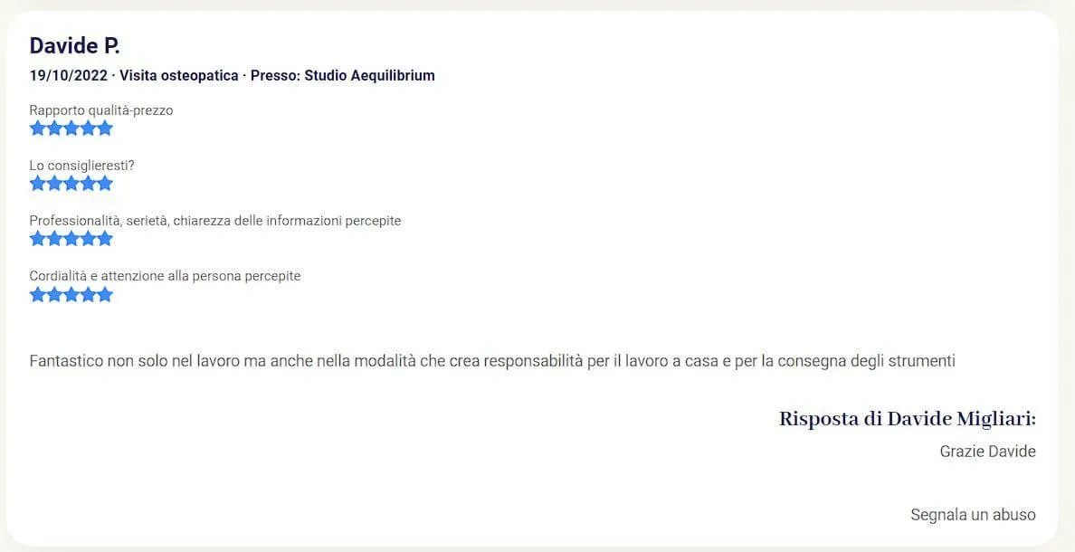 Sono Davide Migliari Dott. in fisioterapia laureato con lode presso l'Università di Modena e Reggio Emilia, Osteopata.