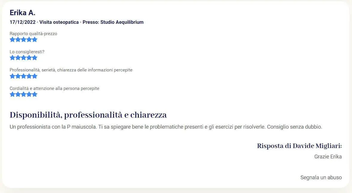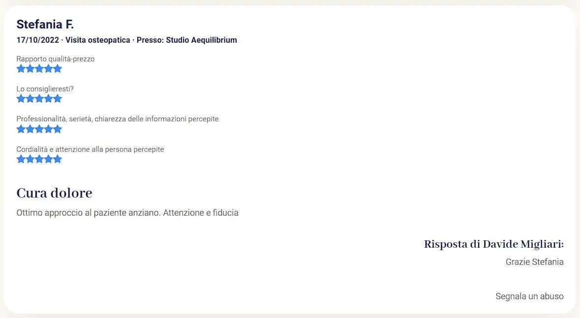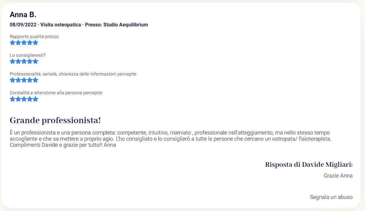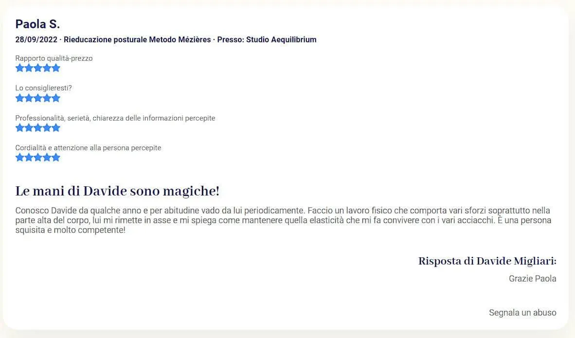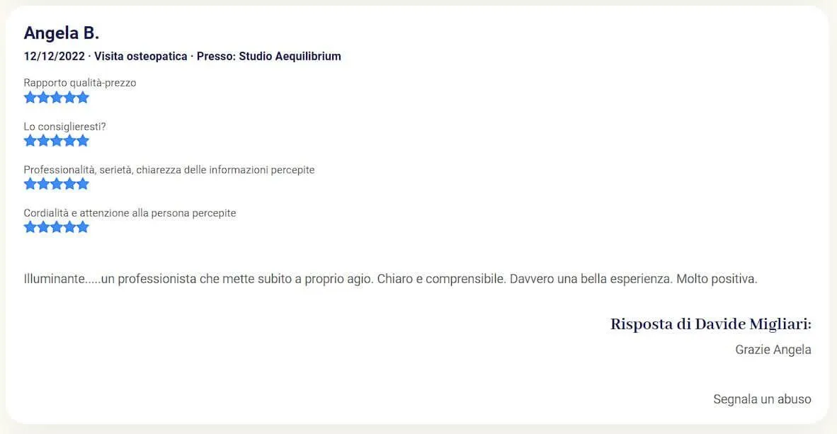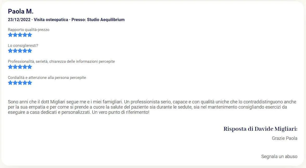 Sono Davide Migliari Dott. in fisioterapia laureato con lode presso l'Università di Modena e Reggio Emilia, Osteopata.