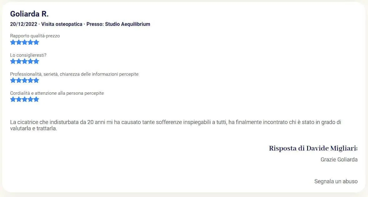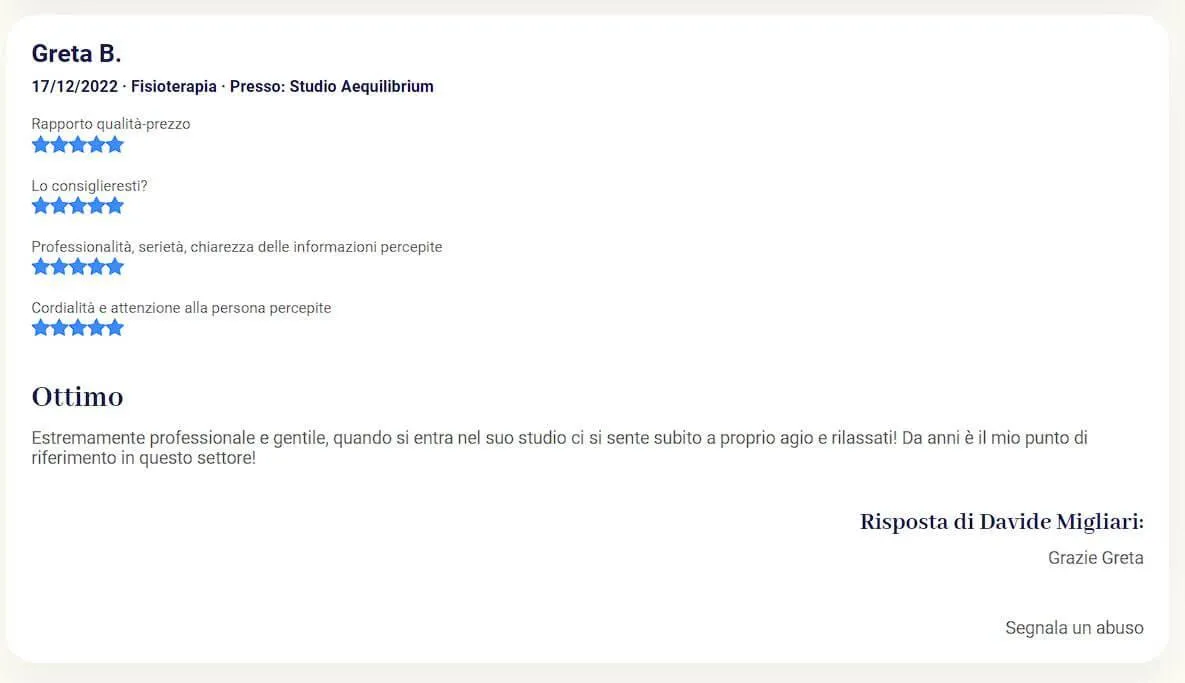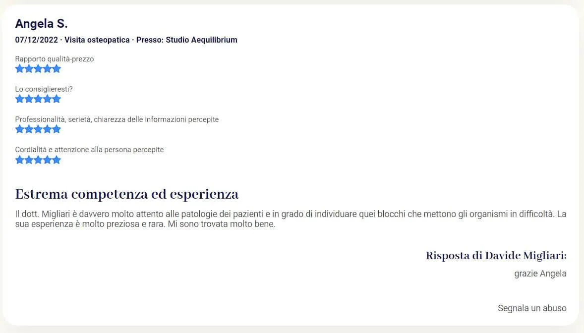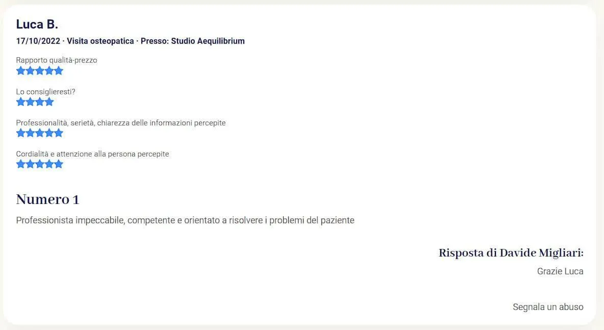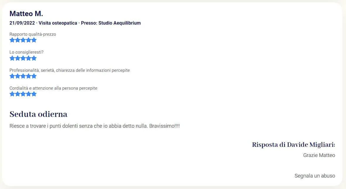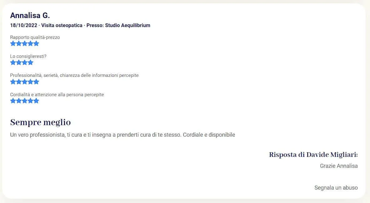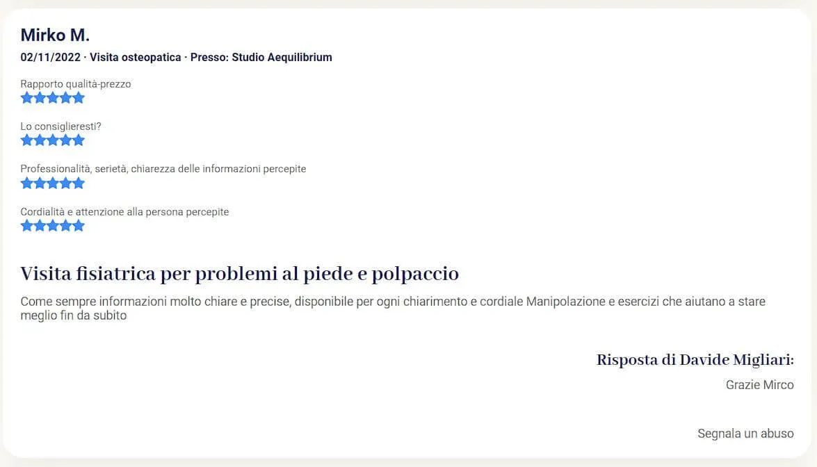 Sono Davide Migliari Dott. in fisioterapia laureato con lode presso l'Università di Modena e Reggio Emilia, Osteopata.