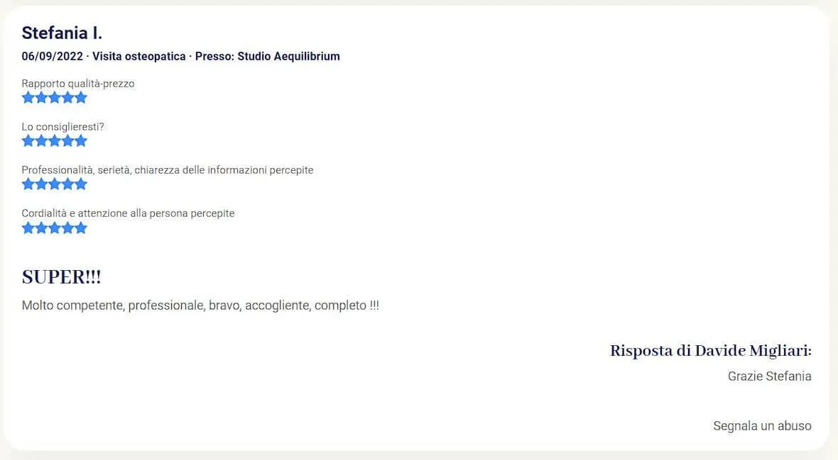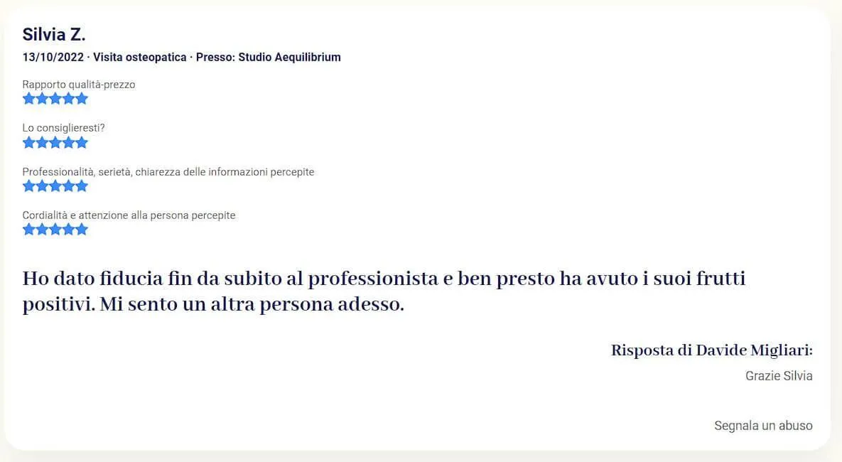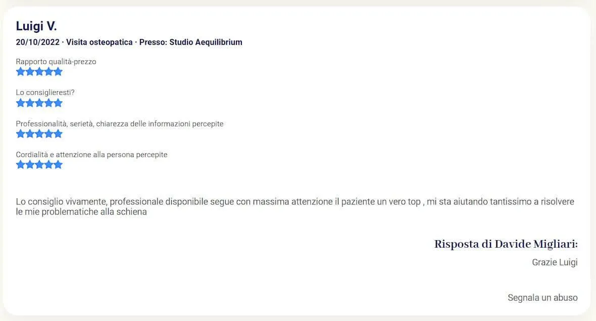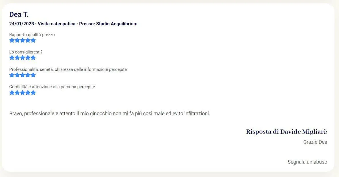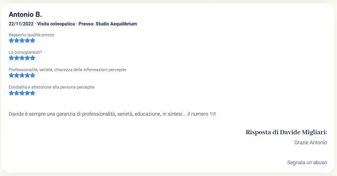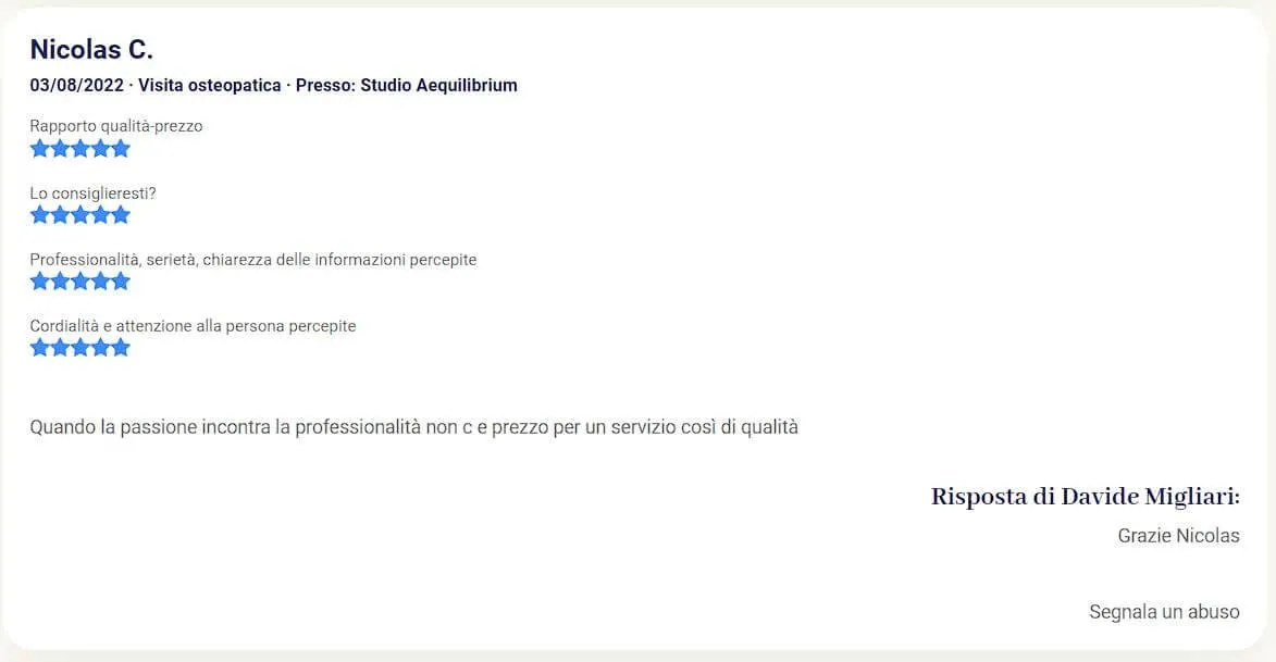 Sono Davide Migliari Dott. in fisioterapia laureato con lode presso l'Università di Modena e Reggio Emilia, Osteopata.